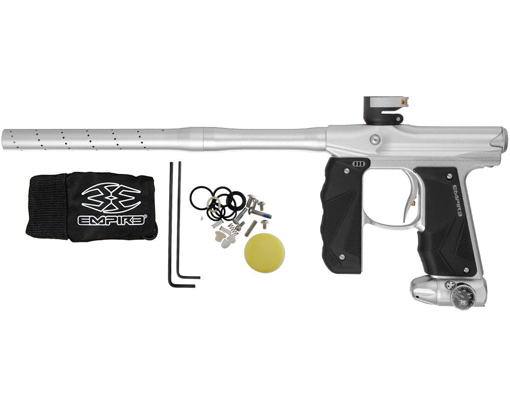 Empire Mini GS is the next generation of a paintball marker legend. The team at Empire has taken the proven Mini marker platform and designed and developed it to be even better. In addition to the battle proven Mini engine the GS includes a full wrap-around rubber foregrip that creates a secure grip and protection from paint and the elements. The Mini GS also adds an On/Off ASA that eliminates any thread issues and makes for smooth removal of your tank. For an added bonus, the new design allows for a simple drop-in of the Redline OLED board in without switching the foregrip. The ASA and Foregrip attachment points have been beefed up for extra strength and superior performance. Of course you have all the regular goodies you have come to expect and depend on from the Empire Mini: Hose-less design, Eyes, Clamping Feedneck, and proven Mini performance. It takes a truly amazing product to follow a legend, and Empire hits the mark with the Mini GS.