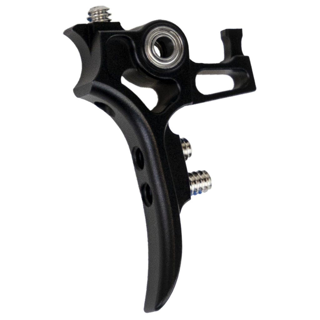 The Exalt KILLSWITCH Trigger for the Emek and EMF100 markers is precision machined from a billet of aircraft-grade aluminum and engineered to provide maximum comfort and speed to your Planet Eclipse Emek and EMF100. Outfitted with dual high-speed stainless ball bearings & stainless adjustment hardware that resists rust, corrosion and stripping, the Exalt Emek trigger is made to perform and outlast the competition. Ultralight Design with skeletonized cuts to reduce weight and increase responsiveness Radiused design / no hard edges for maximum comfort 3-Point Adjustability; trigger pre-travel, post-travel and activation point are all adjustable Includes custom-fit stainless pivot pin with knurling to keep it in place.