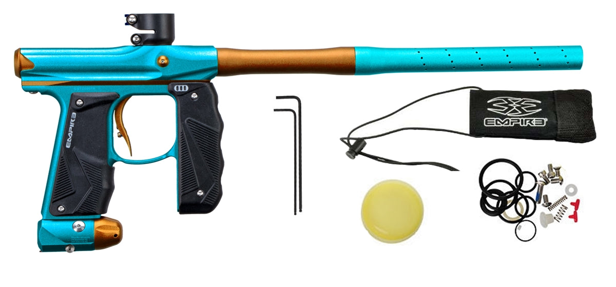 The Empire Mini GS Paintball marker now comes with a new two piece barrel. The Mini GS is the next generation of a paintball marker legend. The team at Empire has taken the proven Mini marker platform and designed and developed it to be even better. In addition to the battle proven Mini engine, the Empire Mini GS includes a full wrap-around rubber fore grip that creates a secure grip and protection from paint and the elements. The Mini GS also adds an On/Off ASA that eliminates any thread issues and makes for smooth removal of your tank. For an added bonus, the new design allows for a simple drop-in of the Redline OLED board without switching the fore grip. The ASA and fore grip attachment points have been beefed up for extra strength and superior performance. Of course you have all the regular goodies you have come to expect and depend on from the Empire Mini: Hose-less design, Anti Chop Break Beam Eyes, Clamping feedneck, and proven Mini performance. It takes a truly amazing product to follow a legend, and Empire hits the mark with the Mini GS.