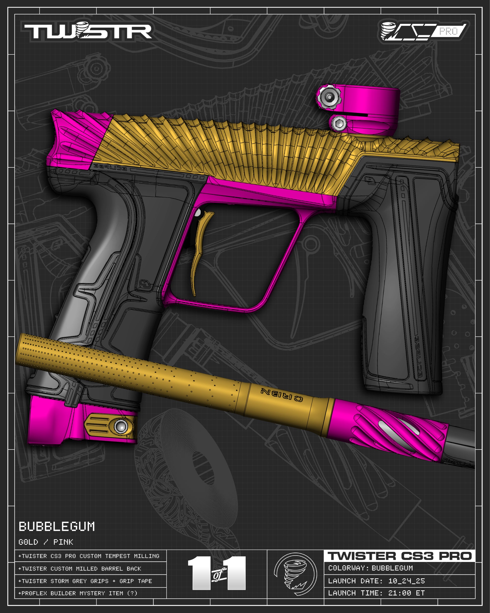 The TWSTR CS3 PRO Platform is embodiment of modern day custom, a true refinement of Planet Eclipse's the pro-proven flagship marker. Limited to only 300 TOTAL MARKERS in the First Wave of release spanning 140 stunning colorways making it the largest selection of any marker currently on the market. Featuring our new groundbreaking Tempest 3D Flow contoured “Clamshell” body-wrapped milling spanning the entire bespoke body from barrel to boltcap. Giving the marker an "SL" level of weight reducing while allowing for sculpted signature TWSTR milling, paired with exclusive color combos to add an aggressive and unique marker profile.