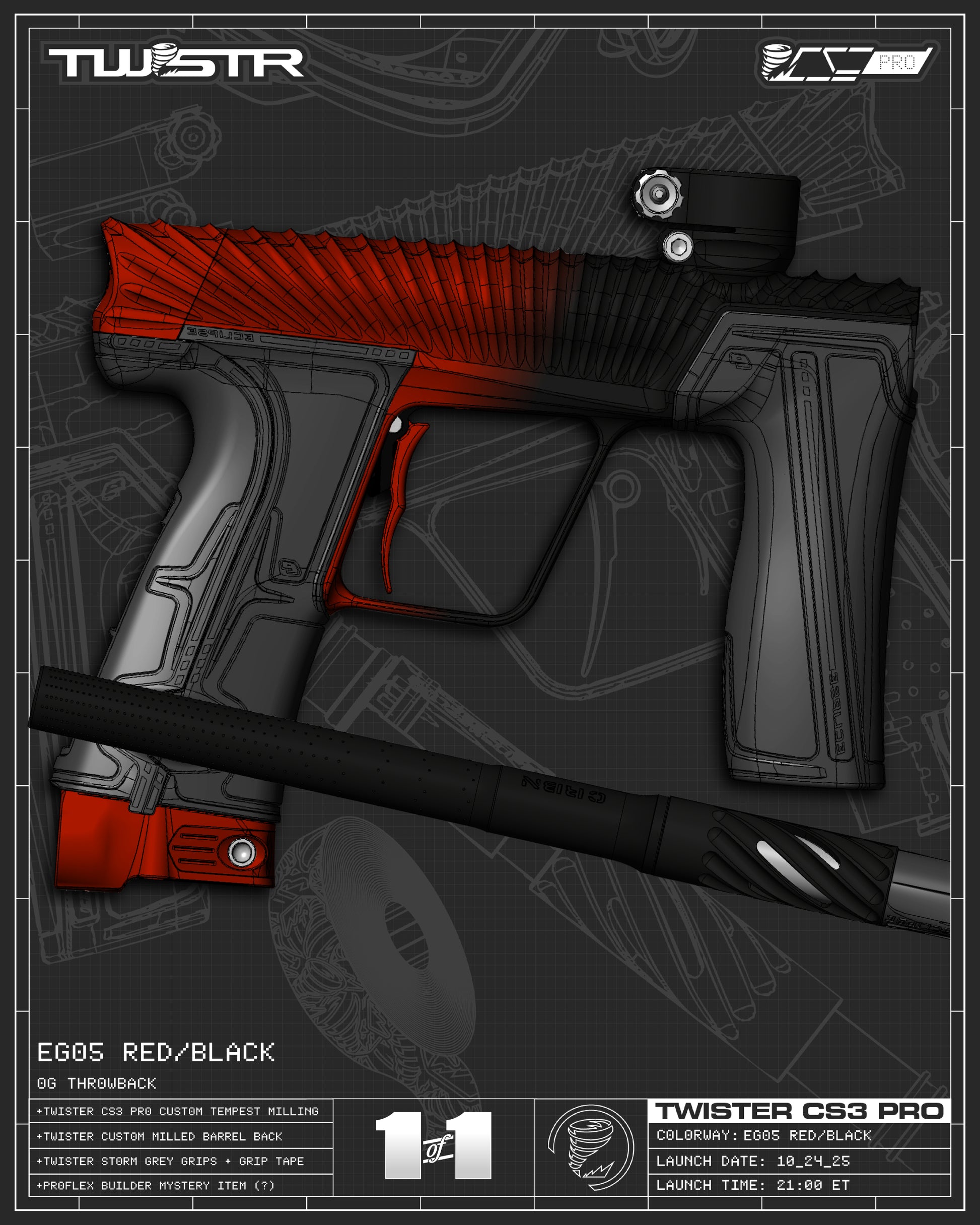 The TWSTR CS3 PRO Platform is embodiment of modern day custom, a true refinement of Planet Eclipse's the pro-proven flagship marker. Limited to only 300 TOTAL MARKERS in the First Wave of release spanning 140 stunning colorways making it the largest selection of any marker currently on the market. Featuring our new groundbreaking Tempest 3D Flow contoured “Clamshell” body-wrapped milling spanning the entire bespoke body from barrel to boltcap. Giving the marker an "SL" level of weight reducing while allowing for sculpted signature TWSTR milling, paired with exclusive color combos to add an aggressive and unique marker profile.