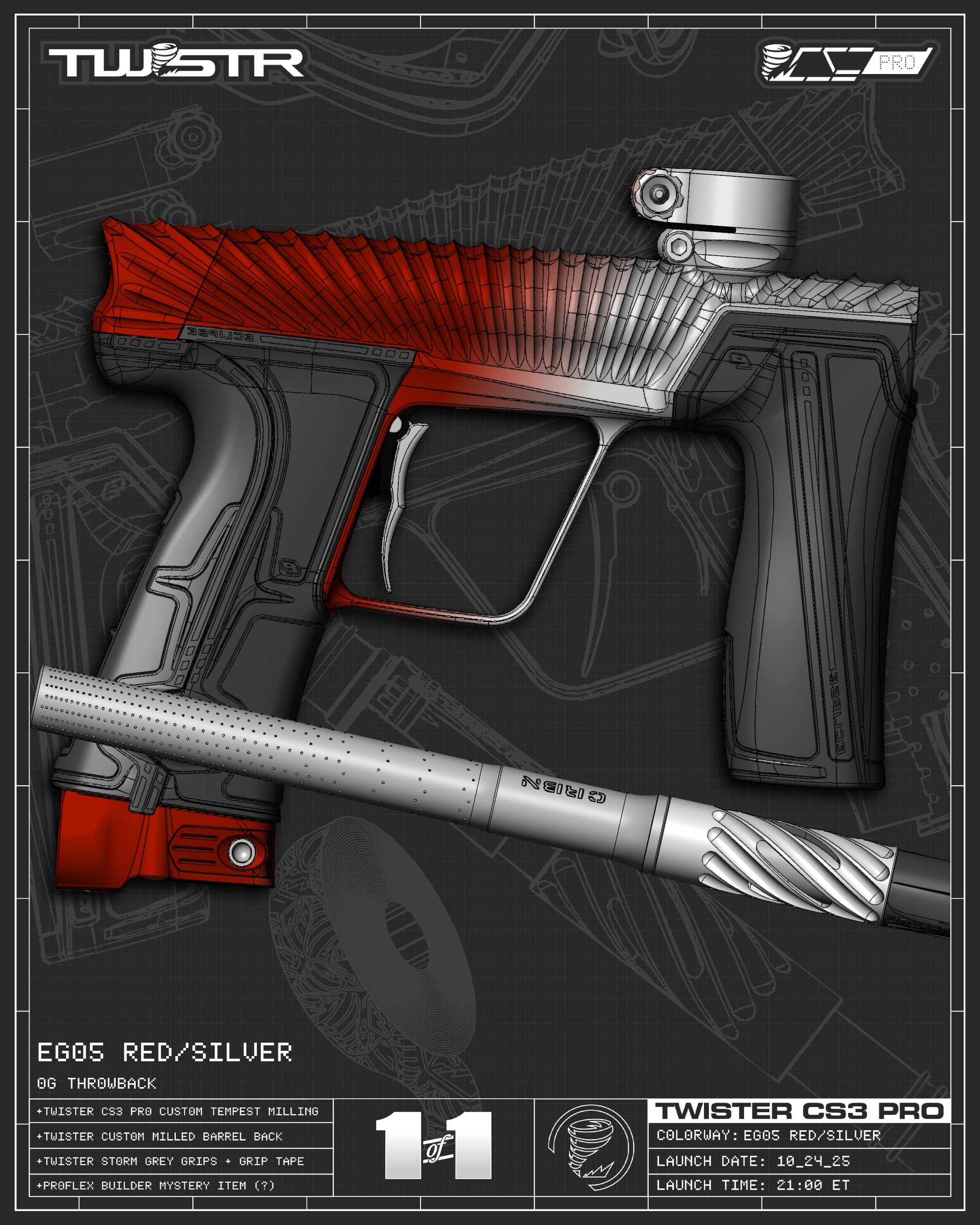 The TWSTR CS3 PRO Platform is embodiment of modern day custom, a true refinement of Planet Eclipse's the pro-proven flagship marker. Limited to only 300 TOTAL MARKERS in the First Wave of release spanning 140 stunning colorways making it the largest selection of any marker currently on the market. Featuring our new groundbreaking Tempest 3D Flow contoured “Clamshell” body-wrapped milling spanning the entire bespoke body from barrel to boltcap. Giving the marker an "SL" level of weight reducing while allowing for sculpted signature TWSTR milling, paired with exclusive color combos to add an aggressive and unique marker profile.