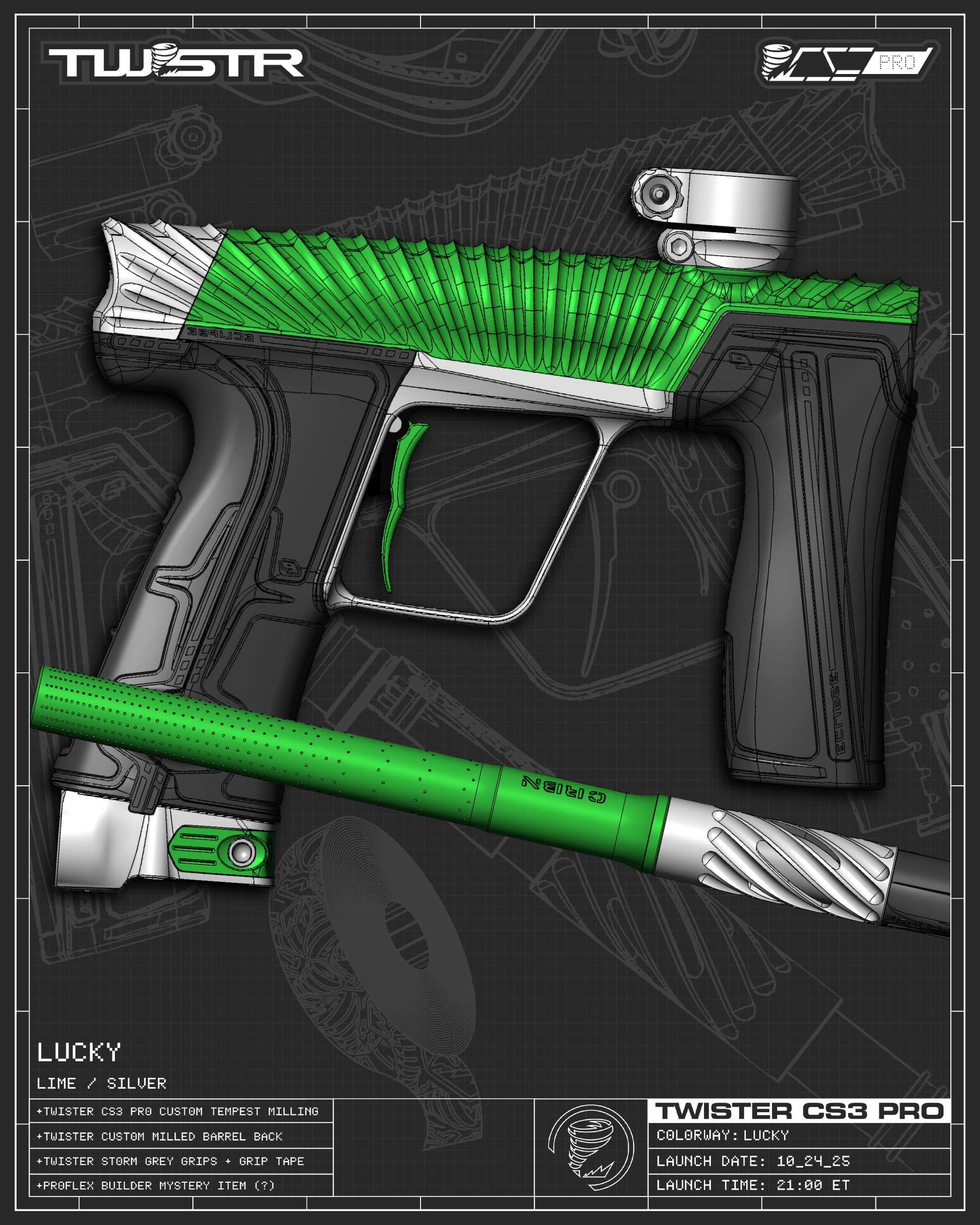 The TWSTR CS3 PRO Platform is embodiment of modern day custom, a true refinement of Planet Eclipse's the pro-proven flagship marker. Limited to only 300 TOTAL MARKERS in the First Wave of release spanning 140 stunning colorways making it the largest selection of any marker currently on the market. Featuring our new groundbreaking Tempest 3D Flow contoured “Clamshell” body-wrapped milling spanning the entire bespoke body from barrel to boltcap. Giving the marker an "SL" level of weight reducing while allowing for sculpted signature TWSTR milling, paired with exclusive color combos to add an aggressive and unique marker profile.