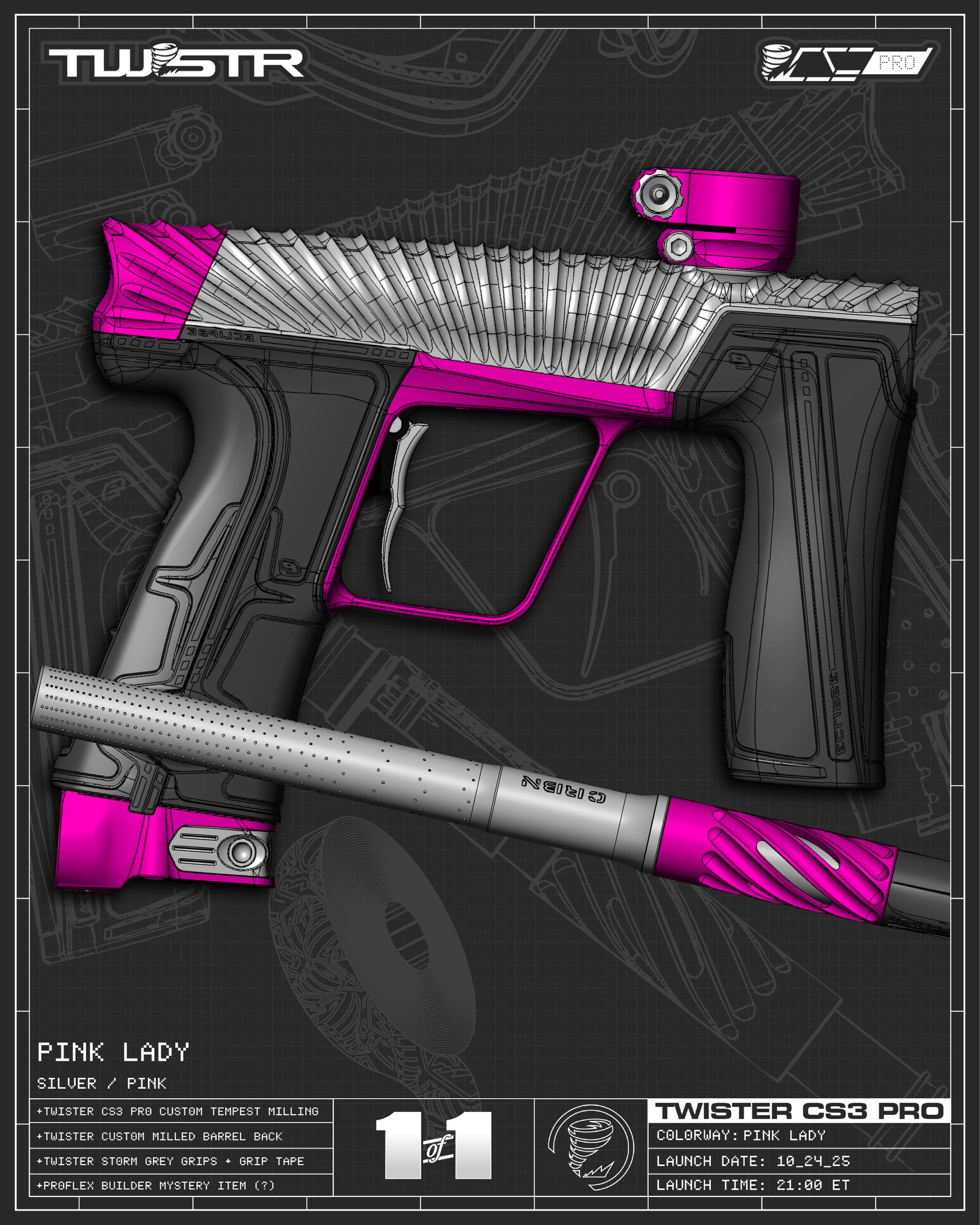 The TWSTR CS3 PRO Platform is embodiment of modern day custom, a true refinement of Planet Eclipse's the pro-proven flagship marker. Limited to only 300 TOTAL MARKERS in the First Wave of release spanning 140 stunning colorways making it the largest selection of any marker currently on the market. Featuring our new groundbreaking Tempest 3D Flow contoured “Clamshell” body-wrapped milling spanning the entire bespoke body from barrel to boltcap. Giving the marker an "SL" level of weight reducing while allowing for sculpted signature TWSTR milling, paired with exclusive color combos to add an aggressive and unique marker profile.