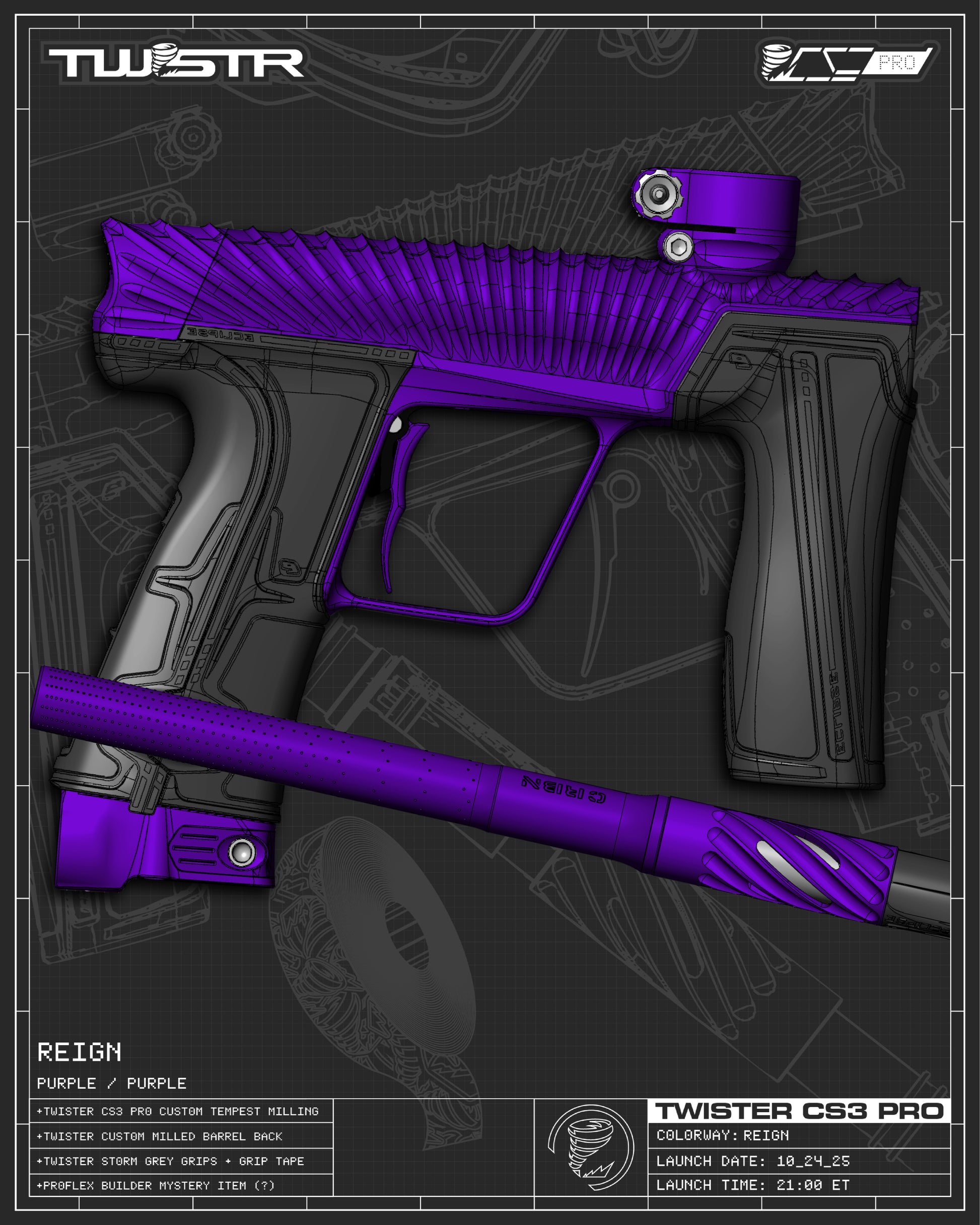 The TWSTR CS3 PRO Platform is embodiment of modern day custom, a true refinement of Planet Eclipse's the pro-proven flagship marker. Limited to only 300 TOTAL MARKERS in the First Wave of release spanning 140 stunning colorways making it the largest selection of any marker currently on the market. Featuring our new groundbreaking Tempest 3D Flow contoured “Clamshell” body-wrapped milling spanning the entire bespoke body from barrel to boltcap. Giving the marker an "SL" level of weight reducing while allowing for sculpted signature TWSTR milling, paired with exclusive color combos to add an aggressive and unique marker profile.