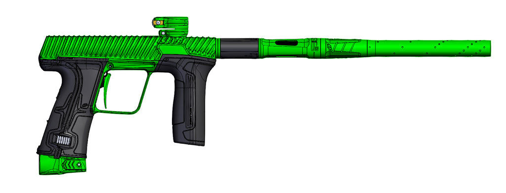 The NEW two-piece tool less wraparound textured grips not only make accessing the modular marker electronics package (MME) an effortless task, but the rear section now extends to cradle the rear frame overhang, bringing a level of comfort and completeness to the grip that is difficult to appreciate, until held.
