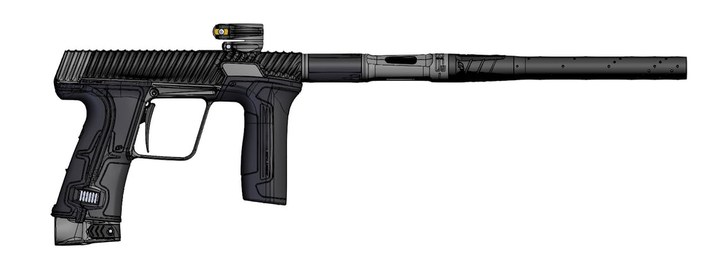 The CS3 prides itself on not only delivering power from its incredible levels of performance, but on the confidence it gives the player when they step under the net. The ergonomics, how the marker feels in the hand and how the player becomes at one with the marker are important to the success of both parties. With a longer grip pitch, a higher rear hand position on the frame, and a reduced overall height from barrel bore to tank centerline, the stance of the CS3 feels instantly more aggressive than its predecessors. But also instantly familiar to those who have spent any time with any Eclipse high end offering. Visually, the CS3 appears more purposeful with its aggressive stance, confident milling, and poise.