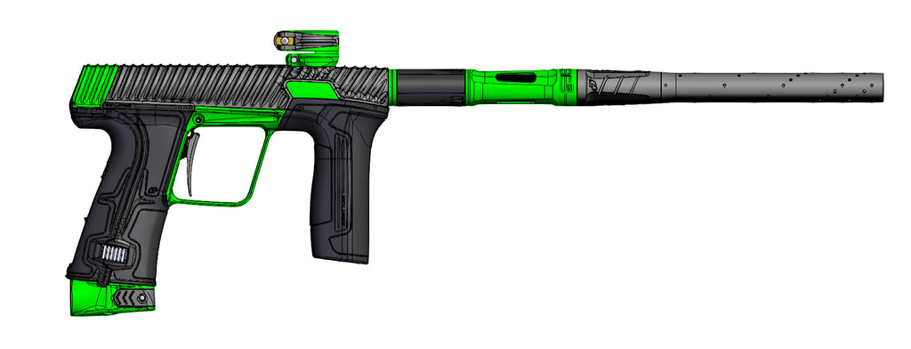 The NEW two-piece tool less wraparound textured grips not only make accessing the modular marker electronics package (MME) an effortless task, but the rear section now extends to cradle the rear frame overhang, bringing a level of comfort and completeness to the grip that is difficult to appreciate, until held.