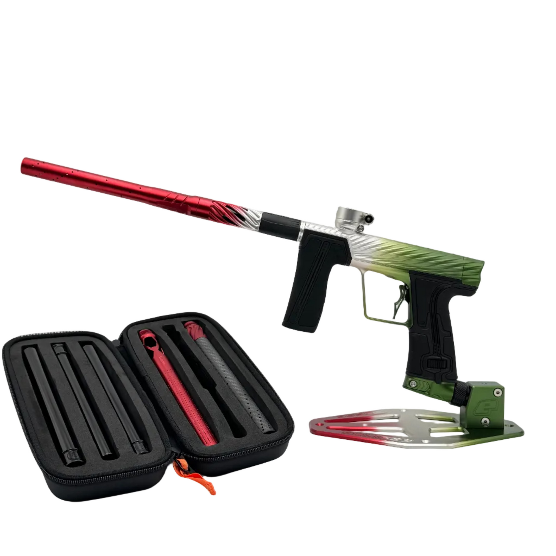 The TWSTR GEO R5 Platform is embodiment of modern day custom, a true refinement of Planet Eclipse's the pro-proven flagship marker. Featuring our new groundbreaking Vortex 3D Flow contoured “Twister” body-wrapped milling spanning the entire bespoke body from barrel to boltcap. Giving the marker an "SL" level of weight reducing while allowing for sculpted signature TWSTR milling, paired with exclusive color combos to add an aggressive and unique marker profile.